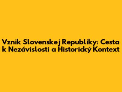 Vznik Slovenskej Republiky: Cesta K Nezávislosti A Historický Kontext